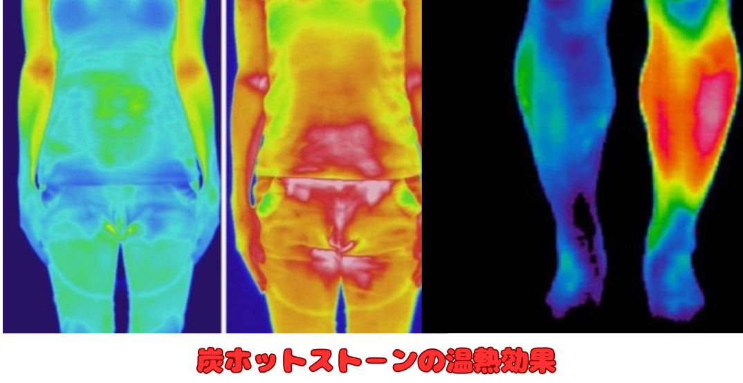 画像のように腰痛患者様はその多くがお腹と足元が冷えています。炭ホットストーンで温めることで腰や足元は温まり腰痛が緩和されていきます。