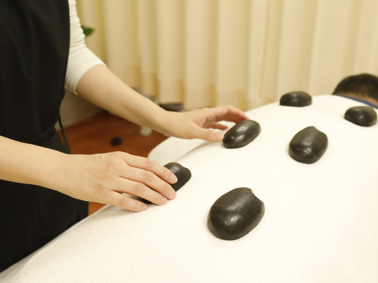 当院では、カウンセリングや全身チェックでお体の状態を見極めながら、不調の原因に応じた施術ができるよう心掛けております。例えば、同じ肩こりであっても、炭ホットストーンで体をじっくりと温め、血行を促進しながら、ヘッドマッサージを中心に行ったり、肩甲骨を中心に施術したり、あるいは同時にカウンセリングやお食事のアドバイスをさせて頂いたりと対応は様々。お客様お一人おひとりの状態に合わせた施術は、「まるで専属トレーナーのようだ」と、老若男女を問わず様々なご職業の方に喜ばれております。